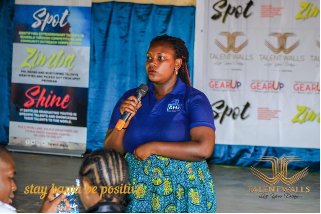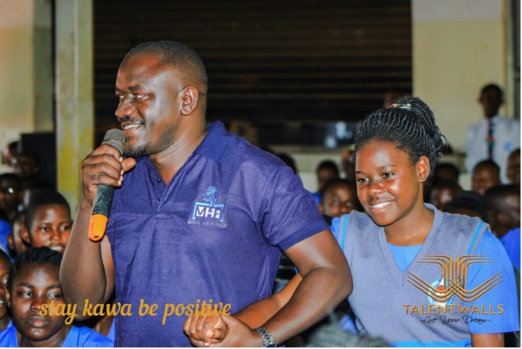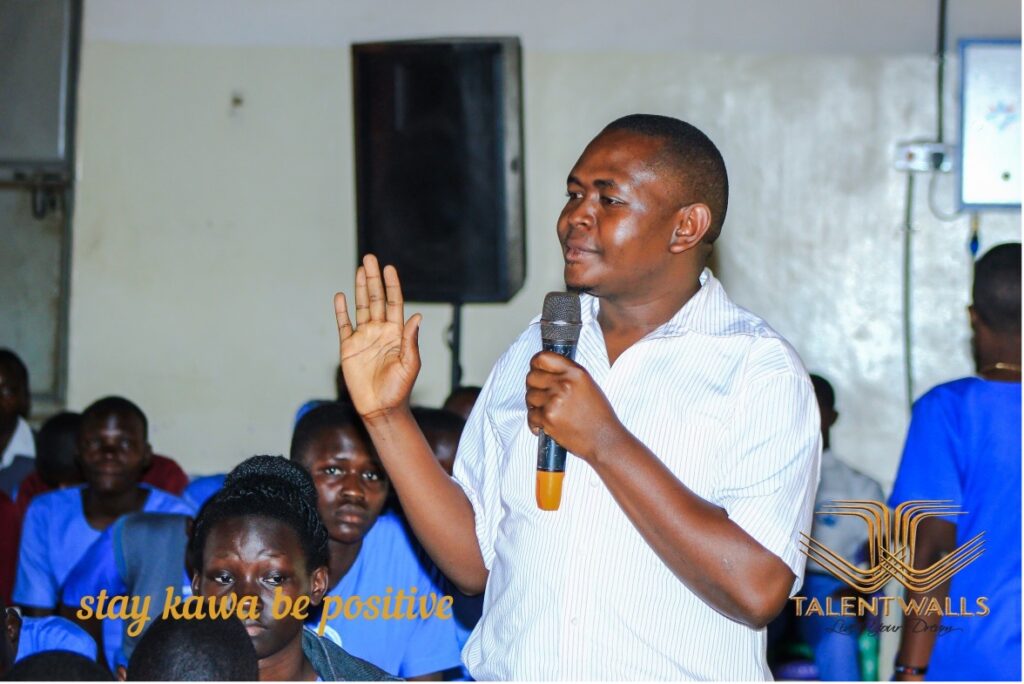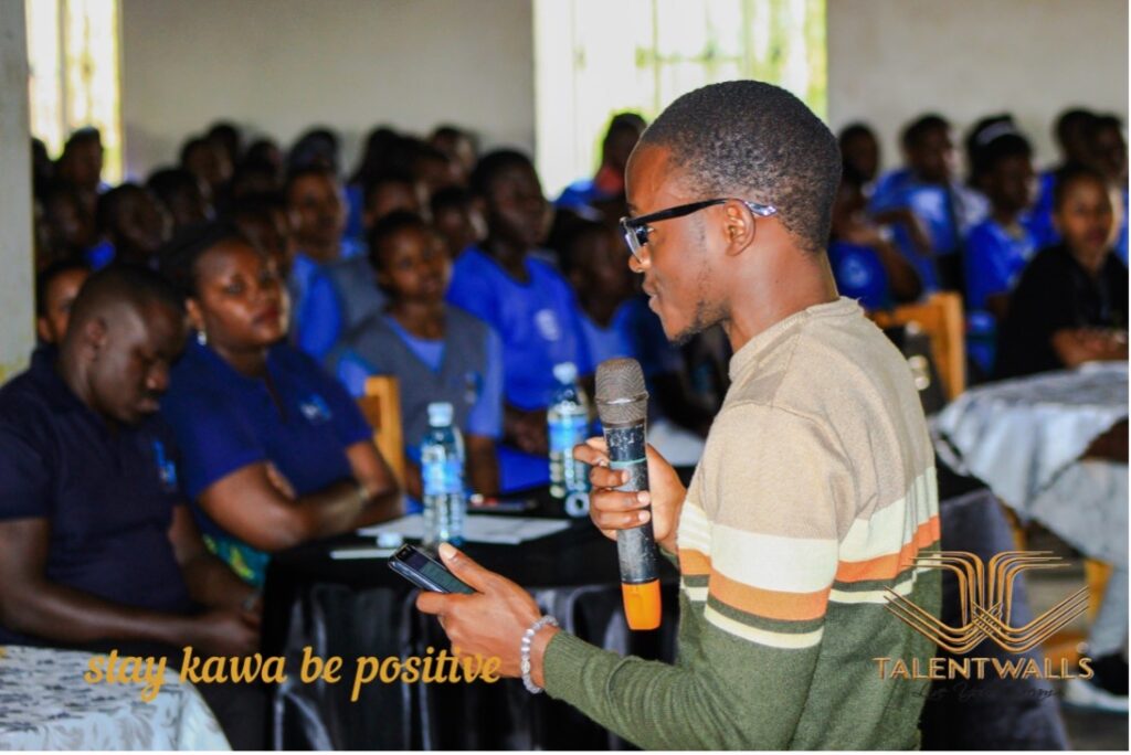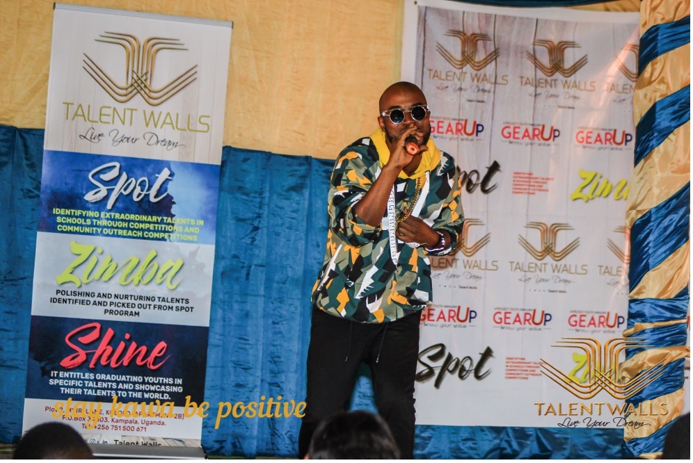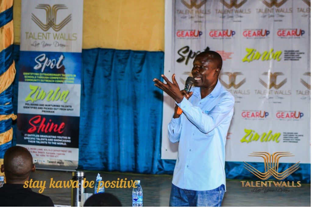 Mr. Mbaziira Brian from talent walls talked about talent walls, its mission, vision, programs and how they run. He as well informed them about the stay kawa be positive campaign and its purpose. He introduced the talent walls team and mentioned the fact that all of them have talents where by one of them was asked to showcase it for the students to further understand it practically.. He asked some students to join him on stage so as to illustrate the programs that talent walls runs. He said that people with talents should always be active whenever they get such opportunities and emphasized discipline since success of one’s talent moves in hand with discipline.